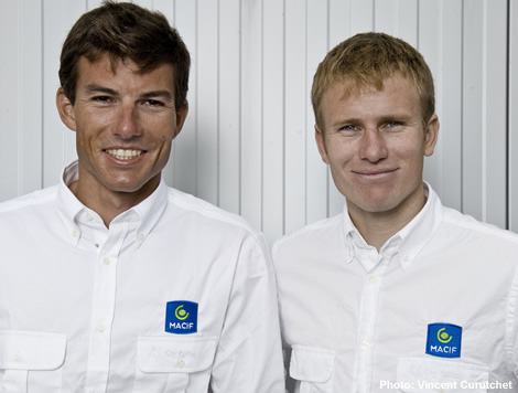 Sailing with le Cleac’h is the British sounding Christopher Pratt (who’s mother is English, but he is French). Pratt is yet another ex-Figaro sailor who has been extremely fortunate over the last few years in winning French versions of the Artemis Offshore Academy, first the Challenge Espoir Credit Agricole, gaining him backing for a two year Figaro campaign, and then, following an arduous nine month trial, in the autumn of 2008 he was announced as the winner of another competition to win a place aboard Marc Thiercelin’s DCNS 1000 IMOCA 60 which he raced in last year’s singlehanded Route du Rhum.