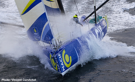 Francois Gabart, 28, is the only ‘new generation’ skipper to come into the IMOCA class in this cycle with a new boat. His sponsor is MACIF, the 20 billion Euro turnover French insurance, banking and equity management group, which previously supported Gabart in his Figaro campaign. MACIF continues to support new talent, running trials for places on the team’s two Figaros, currently backing Paul Meilhat and Fabien de la Haye, who finished sixth and second respectively in this year’s Solitaire du Figaro.