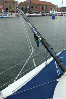 Following the mast breakage in the Barcelona World Race, the wingmast has been replaced (the reasons for the breakage are not public) and the carbon keel foil has also been replaced with a steel one, allegedly because it is safer for when the boat competes in the Vendee Globe next year and although it is heavier, it has less drag than the fatter carbon foil.
