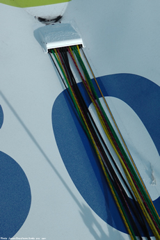The JMV-built, CDK-finished wingmast and its accompanying deck spreaders are held in place with Navtec PBO stays, which Gautier says are both lighter and cheaper than carbon. “All the Volvo 70s are going for carbon because they have a CoG rule. They are working to improve their windage and carbon is smaller diameter. We don’t have a CoG rule so we need to go for the lightest rigging. Navtec did some lighter stuff for us.” The backstays are from Maffioli, a mix of PBO and Dyneema.
