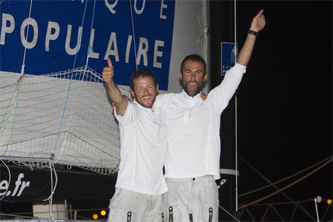 After a head to head duel which has run relentlessly through the last seven days Banque Populaire finally eclipsed near sistership MACIF, sailed by François Gabart and Sebastien Col, who finished only 1 hour and 50 minutes later.