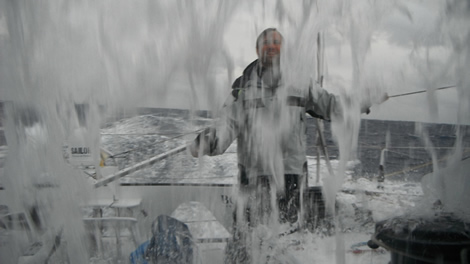 Ironically being further north on this occasion Thomson believes they saw less wind and, importantly, less seas, than those further south. “After we went through the front we had a peak wind speed of 47.7 knots. It was only for about 10-15 seconds, but apart from that we really didn’t see much more than 40 knots.”