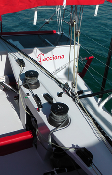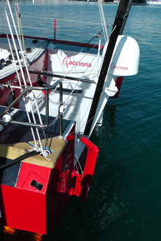 However, like Mike Golding’s sponsor Gamesa (another Spanish company), Acciona is also a serious global player in the renewable energy market. Hence why one of the principle features of the new IMOCA 60 is that she is fully ‘eco’, relying on solar, wind and water power to drive her electronics and hydraulics and carrying no fossil fuels. The only fuel - apart from wind, sun and water - is some hydrogren to run her fuel cell that in turn powers her electric engine – and these are only on board in order to fulfil IMOCA class rules. Typically Acciona will be powered by her enormous array of solar panels.