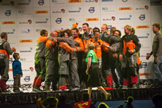 Thousands of Irish supporters enveloped the Galway basin with extraordinary enthusiasm, which reached fever point when the French boat tied up alongside, congratulating the first Irish winner of the Volvo Ocean Race: Damian Foxall, watch leader on Groupama 4!