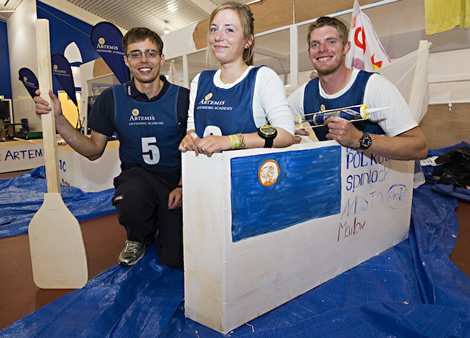 Once done, at around 2300 it was then back into the van bound for the Weymouth & Portland Sailing Academy. En route they were told about their own version of the ‘Sikaflex challenge’ to build a boat (a mini Open 60 ideally) on a limited 'virtual' budget of £1000 with materials and tools available from a ‘shop’ set up within the Academy (a slight change from last year when all the materials were provided). In addition, this year they also had to build sails for their vessels.