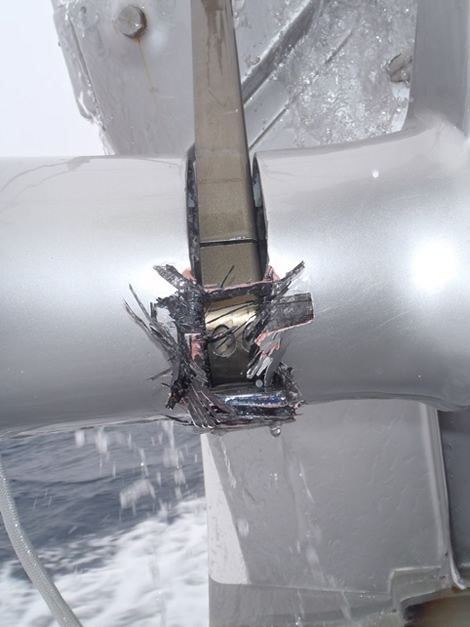 "By the time I got to the companionway hatch the rudder was in the air and the hydro generator was dragging in the water. The boat broached and went head to wind. I immediately rolled the J2 away and stopped the boat in a big sea.