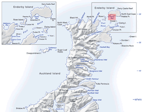 Stamm stopped on the sheltered side of island late afternoon yesterday (UTC). After struggling to find a protected spot, Stamm is ended up moored in Sandy Bay, on the side of south of Enderby Island, to the northeast of the main Auckland island. This has offered him protection from the 25 knot northwest wind. He has reported sightings of whales and sea lions.