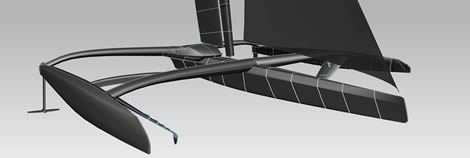 In the longer term, Hydroptere 2, a trimaran that will be a synthesis of L'Hydroptere and the best conventional maxi-multihulls, will aim to cross the Atlantic in three days and to exceed the legendary barrier of covering 1,000 miles in 24 hours.