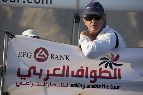 Oman Sail skipper Sidney Gavignet has spent the last two and a half weeks getting some winter sun, while competing in the EFG Bank Sailing Arabia – The Tour (SATT), at the helm of the sponsor’s boat EFG Bank (Monaco).