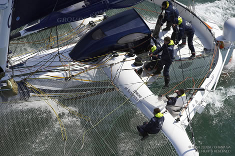 In terms of their race schedule from here, Edmond de Rothschild will compete in the Artemis Challenge, around the Isle of Wight during Cowes Week and then the Rolex Fastnet Race. During 2011 Fastnet, Josse and the crew of Gitana XI came home on the heels of Banque Populaire, despite their trimaran being just over half the size of the mighty Banque Pop. At present they are entered this year's race on Gitana XI again, but Josse thinks that they might take the MOD70 instead. This will depend on what is found when they've got the boat back to their base (a decision will be made this week).