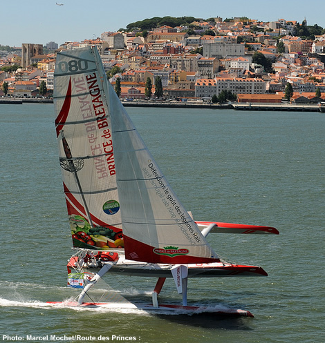 Prince de Bretagne, or to be specific the Northern Brittany-based co-operative behind the vegetable brand, has significantly upped the ante with its sailing sponsorship. Having campaigned a Multi50 to victory in the 2010 Route du Rhum, it has since funded a new 80ft trimaran for its race winning skipper Lionel Lemonchois. This was launched in the spring. In addition, due to the Prince de Bretagne trimaran being an unusual size without much by way of completion, the co-operative set up its own race around the European coastline - the Route des Princes - in which their new steed could race.