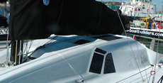 The spreaders are long and swept back and there are no hydraulics or hooks to contend with as there are on bigger boats, as, again, they are prohibited under the Class40 rule. There are no jibs tracks, instead there is the now common laterally barber hauler arrangement with a flying ring setting the lateral position of the clew.