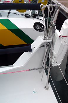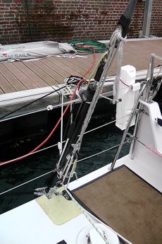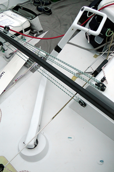 The runner itself is in Kevlar, although Hanakamp in retrospect believes they should have gone to PBO to reduce windage, and is fitted with a deflector allowing the top of the runner to be pulled into the mast lower down when using fractional headsails.