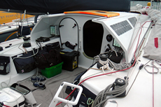According to Hanakamp a development group comprising himself, Tom Humphreys, their sailmaker Elvström Sails and Southern Spars worked on mast design, looking at the different options - swept back/in line spreaders, deck stepped/keel stepped, two/three spreaders, etc. While some Class40s have gone to the ultimate extremes in trying to the lower the VCG of the rig by having just two spreaders and fitting them low on the mast, Vaquita has a relatively conservative option with a deck-stepped set-up and three swept back spreaders. “It is conservative,” Hanakamp admits, “but at the same time you gain stability under top mast reaching sails. VCG is basically the same as all the two spreader masts and you have more control over the mast. Windage is roughly the same, because other people have wider second spreaders and they have to have additional intermediate shrouds.”