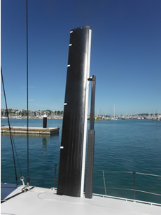 Significantly the mast is deck stepped with a keel tower arrangement beneath it, plus the structure and watertight box around the canting keel.