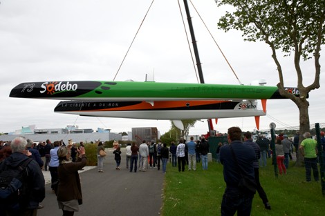 Under a shower of confetti the new Sodebo Ultim trimaran was launched today at 11:30 at the Multiplast yard in Vannes.
