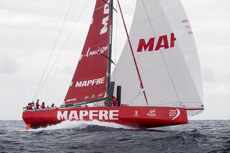 Finally MAPFRE stepped up to the plate, in a deal that was only signed just over two weeks ago. (The Madrid-based multinational insurance giant previously backed the Martinez-Fernandez boat in the last Barcelona World Race.)
