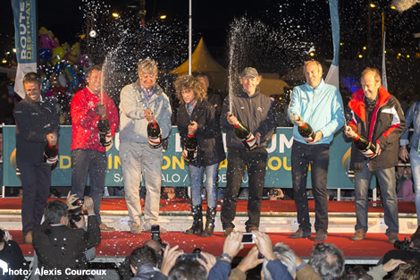For this race the organisers also did well to get many of the previous winners to attend to celebrate the 10th running of the Route du Rhum. This included Mike Birch (who turned 83 today and who has been in town with Walter Green, designer of A Capella/Olympus photo), Marc Pajot, Philippe Poupon, Florence Arthaud, Laurent Bourgnon (the race’s only two time winner), Lionel Lemonchois and Franck Cammas. The only line honours winner missing has been Michel Desjoyeaux, who’s currently on leg 1 of the Volvo Ocean Race aboard MAPFRE.