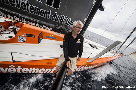 Sailing his first event in the IMOCA 60 is 2003 Mini Transat winner turned Figaro sailor Armel Tripon. He has acquired the 2008 (ie first) generation VPLP-Verdier design once campaigned as Groupe Bel by Kito de Pavant.
