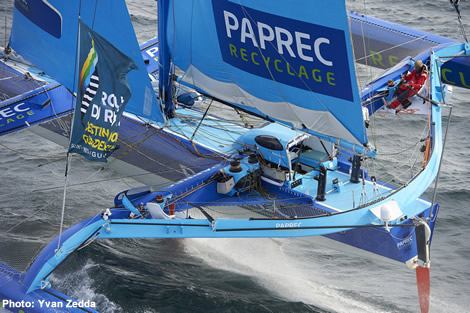 Gavignet will be up against two newbies of the Ultime class. Seb Josse has been racing his MOD70 Edmond de Rothschild pretty much since the outset of the MOD70 class. However on Paprec Recyclage, the team’s regular skipper Jean-Pierre Dick has handed over the reigns to two time Solitaire du Figaro winner and former Vendee Globe competitor, Yann Elies.