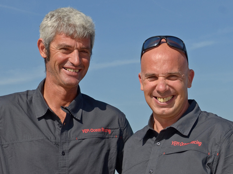 Their boat was originally OC-conceived, launched as Estrella Damm for the first Barcelona World Race when she was sailed by Altadill and American Jonathan McKee. While they had to retire, the boat went on to be sailed by Seb Josse in the 2008 Vendée Globe backed by BT and subsequently in the hands of Roland Jourdain as Veolia Environnement won the IMOCA class in the 2010 Route du Rhum.