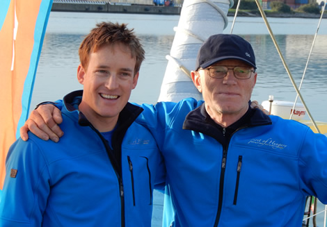 It is perhaps odd that the IMOCA 60 Riechers planned to sail in this race is competing in other hands (as Cheminees Poujoulat), but he has managed to gain use of the 2008 generation Finot-Conq design that Armel le Cleac’h sailed to second place in the 2008 Vendee Globe in the colours of Brit Air. This boat was sailed by Bertrand de Broc in the last Vendee Globe as Votre Nom autour du Monde avec EDM Projets. De Broc campaigned the boat in this autumn’s Route du Rhum, but had to retire when he was thrown over in the cockpit and damaged his elbow. This helped provide Riechers and Audigane with some welcome additional training time in the boat.