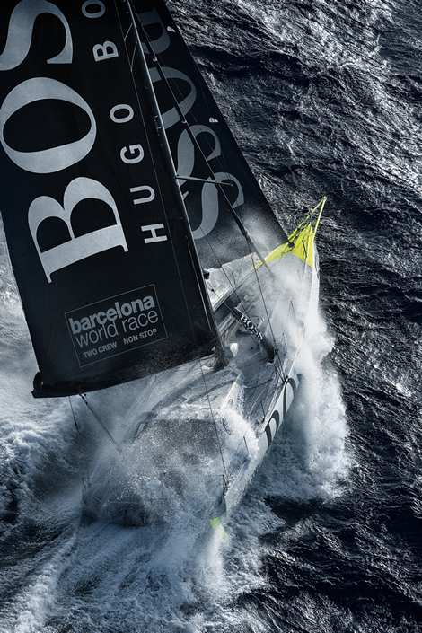 They have been playing with the daggerboard angles to find out what works best. For the Barcelona World Race, Hugo Boss also has a new suit of sails from Doyles New Zealand, designed by Richard Bouzaid. The new mainsail is a little smaller with less power in its head and more reinforcement – a sail designed to survive two and a half months of abuse in a non-stop round the world race.