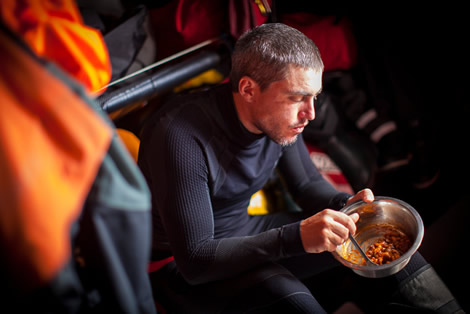 “They are all a little bit different,” continues Ross. “Fuizion is generally a bit spicier - like Chicken Jalfrezi and Green Thai Curry. Mountain House are more your basic spaghetti in meat sauce and everyone loves the Back Country from New Zealand - roast lamb, Mexican chicken, etc. Fortunately I learned a lot about these things in the last race and during training we figured out what the guys like and what they don’t like, so now we have got a pretty confirmed roster of food and enough diversity. I think on leg one we only had one repeat meal, so we have done a good job at keeping things spread out. It’s always good to surprise the guys with a good meal.”