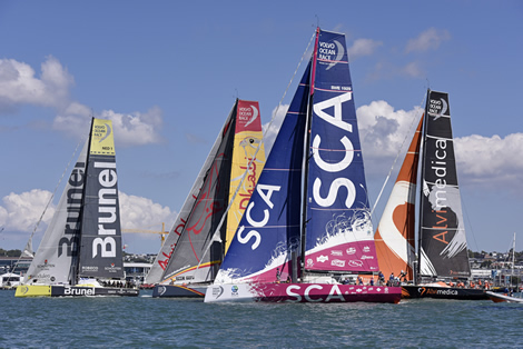 Team SCA’s all-female crew today led the Volvo Ocean Race's New Zealand Herald In Port race on Auckland's Waitemata Harbour today from start to finish becoming the only team to date to win two In Port race, following their victory in Abu Dhabi in January.