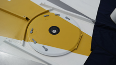 One interesting feature of several of the IMOCA fleet we saw in Plymouth was the extensive use of slippery Cuben fibre, which we hope has been recycled from old sails. On Gitana this is used in the cockpit for the rope bags, while down below (we weren’t allowed to take photos) there’s a substantial ramp made from the material, positioned athwartships across the ‘saloon’ down which the stack trundles in a friction-free manner during manoeuvres. There are also little Cuben fibre ramps to help reduce friction of moving sails through the apertures in the main bulkhead.