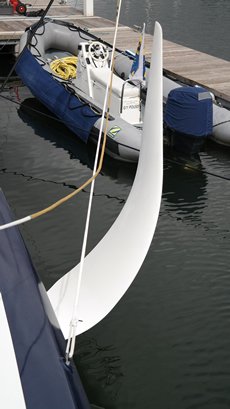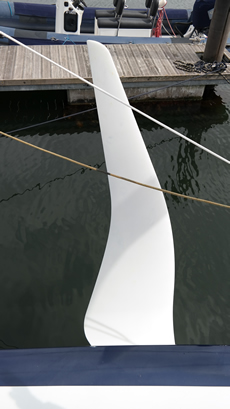 The dramatically curved boards fitted to the six latest generation VPLP-Verdier designs increase significantly the latter two features, righting moment by providing lift down to leeward and vertical lift due to part of the foil being beneath the boat’s centre of gravity, Moth-stylee, but at the expense of providing lateral resistance.