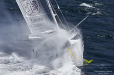 Probably because of the issues with the class limit of five appendages, the IMOCA 60s aren’t permitted to go for multihull-style T-foil rudders. One imagines this would be a logical step if they were permitted. Until this happens the IMOCA 60s won’t be able to become full foilers, although there are photos showing considerable air under their hulls. At present they are at a stage comparable with the ORMA 60s, when were when they first fitted curved foils in their floats during the late 1990s, and performing a similar amount of wheeley-ing.