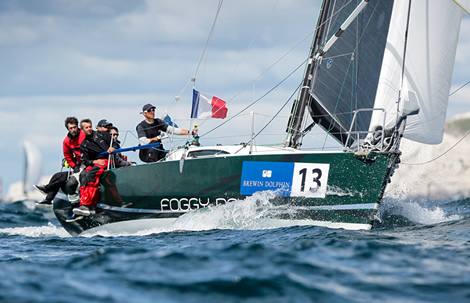 Stand-out boat in Class 2, and across the entire fleet, is Noel Racine's JPK 1010 Foggy Dew. A seasoned campaigner in the RORC's offshore program, this is his first Brewin Dolphin Commodores' Cup and today was his first race around the Isle of Wight. "It is a very nice course - you can see all the cliffs and the Needles. And we had great conditions today with 20-25 knots and sun - it was perfect."