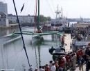 Armel leCleac'h's new Finot-Conq designed Open 60 touches the water