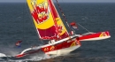 Franck-Yves Escoffier's 50ft trimaran first home in the Transat Quebec-St Malo