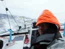Sam Davies cursing herself for slowing down yesterday in the Artemis Transat