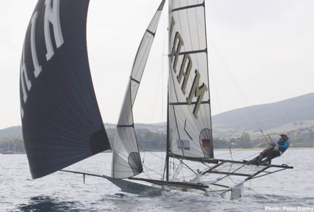Another strong Australian team which has enjoyed success at world level is skippered by John Winning, who showed the way round the course in the practice race which replaced Sunday's scheduled races.