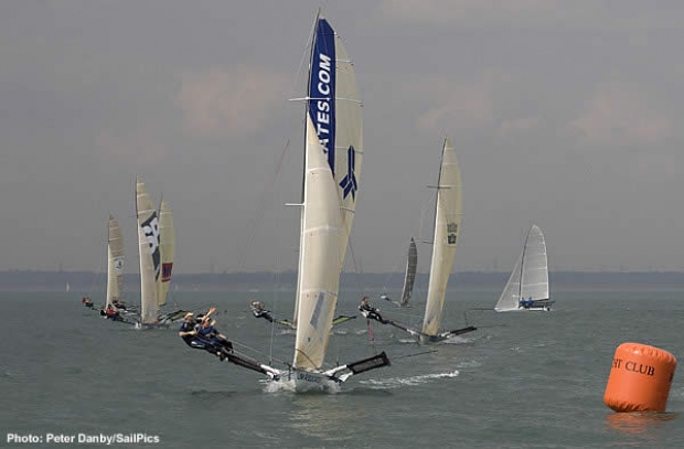 Twelve 18 foot Skiffs arrived at the excellent Calshot sports facility for the first of three rounds of the 2004 UK 18 foot Skiff Grand Prix that will be sailed in the Central Solent, organised by the Royal Thames Yacht Club.