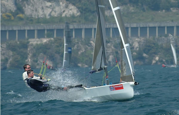 The following day produced the strongest winds of the week, and the war of attrition continued, with the many casualties including last year’s Fireball World Champion Chips Howarth and Tim Hancock. They were knocked out of contention when one of their trapeze racks snapped while launching from the notoriously treacherous slipway at Riva. Lennon was unable to reproduce his stunning race-winning form from day one, but Fawcett fought back from his previous day's gear failure to post a second place behind Jones. Fawcett, who with Dubrovnik weighs in as one of the lightest crews on the 14 circuit, took the lead from Jones in the next heat, but a gust from hell saw him pitchpole less than 200 metres from the finish, allowing Jones his second win of the day.