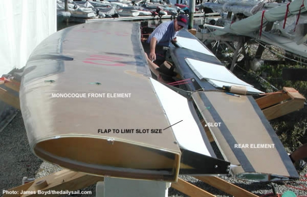 On the boat the crew are able to adjust the twist in this front element by controlling the amount the two trailing edge of the front element move up and down relative to one another.