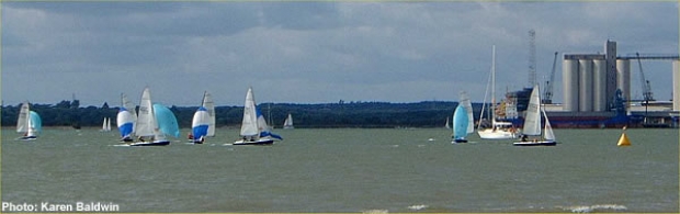 At the first mark, it was Skip and Chay Atkins in the lead, closely followed by Tim and Linda Hulley and Andy and Karen Baldwin. On the first downwind leg, Tim and Linda experienced problems with a gennaker hoist, giving them an opportunity to check the alignment of their centreboard and rudder from the water, allowing Helen and Andrew Phillips through into third place.