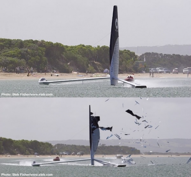 The Macquarie Speed Sailing Team were packing up their base in Australia's Sandy Point and heading back to Melbourne last night when we spoke to helmsman Tim Daddo about the dramatic explosion of their speed sailing vessel's rig late on Saturday afternoon (Aussie time).