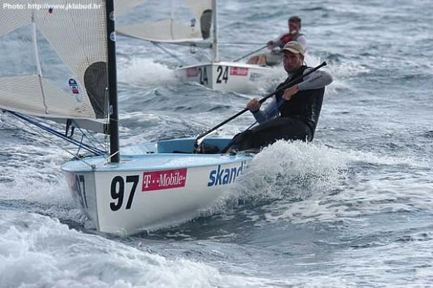 The wind increased to 18 knots for the second race and the race committee hoisted the Oscar flag allowing free kinetics. Sharing the lead with Rafael Trujillo during the whole race, Emilios Papathanasiou tricked the Spaniard on the last run to win the race. “I was lucky” declared Emilios once ashore. “My boat was damaged before the last race and I finished with four litres of water in the boat!” Athens Silver medallist, Rafael Trujillo took second place with +39 team mate Iain Percy in third. Percy, now campaigning in the Star class, has been training hard in the Finn while in Valencia with +39 sailors. Anthony Nossiter, Michael Maier, Karlo Kuret and Piero Romeo are among the +39 sailors presents in Split. When asked about his come back in a top Finn regatta after six years of absence, Iain Percy admits it is just for fun: "I just wanted to come with the guys (+39) and enjoy myself in the Finn again. But actually there is not one muscle in my body that’s not hurting!"