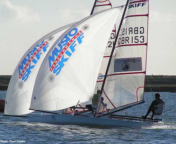 Racing was dominated by current Gold Cup and UK National Champion Richard Stenhouse with Deborah Shanahan (as his crew) from the RCYC Otters on the RNLI Helly Hansen skiff, who led the fleet home in four of the five races. However, he was given good competition from local sailor Dan Dixon sailing DEM Foils, as well as Ian Trotter ( Victor Boats), Simon Reynolds ( Noble Marine Insurance) and Rick Perkins ( Harken).