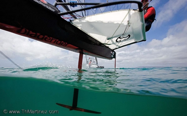 The one design rules for the Bladerider have yet to be finalised but it is likely that some minor variations will be allowed, particularly to do with the all-important wand that automatically operates the lift generated by the main foil on the centreboard. “You’d get more out of that than changing the rig,” Veal emphasises the importance of this.