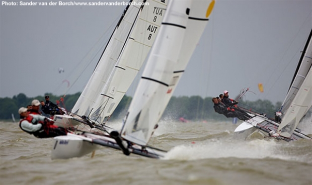 What is most interesting about the change to the new enlarged rig is that the hull, despite being designed in the 1970s to take the load of a smaller rig and single trapeze, never needed to be adapted. “I think, that the boat was able to have the new rig is really a credit to Marstrom,” says Booth. “They have made an excellent product that still remains the highest spec and highest quality beach cat and certainly out of the Olympic class boats it is very high tech. When we put the extra rig size on it, the boat coped very well so there was no problem at all there.”