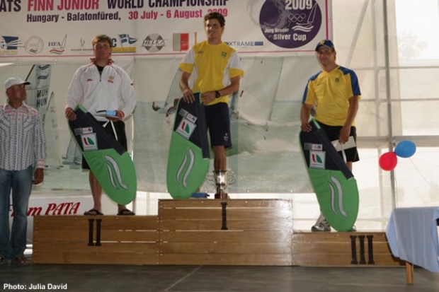 The Pata Boats Finn Junior World Championship for the Jorg Bruder Silver Cup finished with a Brazilian victory, Russian silver and Ukrainian bronze medal at Balatonfüred Yacht Club. A third race win to Jorge Zarif (BRA) gave him the gold medal by a significant margin, while Egor Larionov (RUS) and Andriy Gusenko (UKR) placed sixth and eighth to hang onto to silver and bronze.