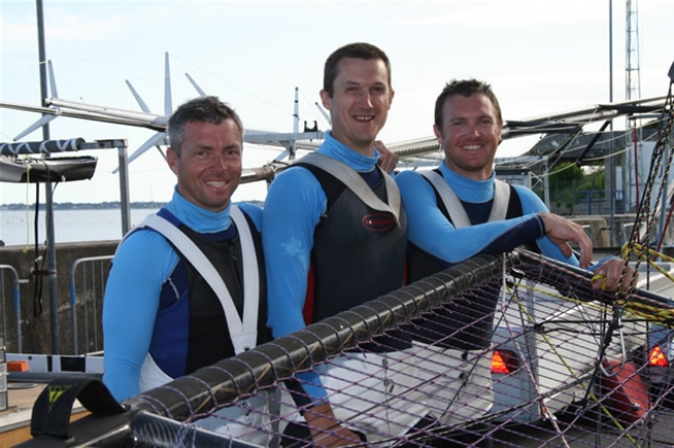 Sunday 28 June marked the start of what promised to be a thrilling 18ft Skiff regatta here in Carnac. Robert Greenhalgh arrived in town at 5am on Sunday morning straight in from the finish of the Volvo race in St Petersburg and stepped aboard his skiff with his two crewmen, Dan Johnson and Phil Harmer (also just off