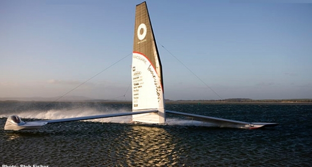 After an impressive 15 years of trying, last Thursday Simon McKeon, Tim Daddo and the rest of Lindsay Cunningham’s Macquarie Innovation team, succeeded in becoming the first ‘boat’ to a sustain a speed in excess of 50 knots over a 500m course at their base in Sandy Point some 200km southeast of Melbourne. These speeds have of course been achieved last year by French kiteboarders Sebastien Cattelan and subsequently Alexandre Caizergues, who officially holds the outright speed record over a 500m course of 50.57 knots.