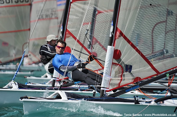 Following a two hour postponement for the wind to stabilise, race four of the Musto Skiff World Championships got underway in brilliant sunshine and a 13-15knot breeze.